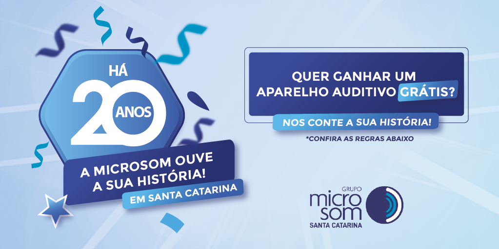 Neste ano completamos 20 anos de existência! 20 anos de trabalho, dedicação e transformação. Em todo esse tempo, nos orgulhamos, principalmente, por todos os vínculos estabelecidos com nossos pacientes. Pensando nisso, agora queremos ouvir a sua história: como foi o processo da sua perda auditiva? Leremos carinhosamente cada história e escolheremos 1 (uma) delas para presentear com um aparelho auditivo. Conte-nos detalhadamente abaixo e boa sorte!